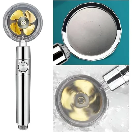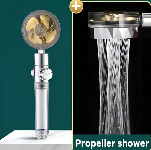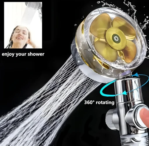 احصل على تدفق مياه أقوى وأنظف مع رأس الدش المزود بمروحة توربينية وفلتر تنقية.